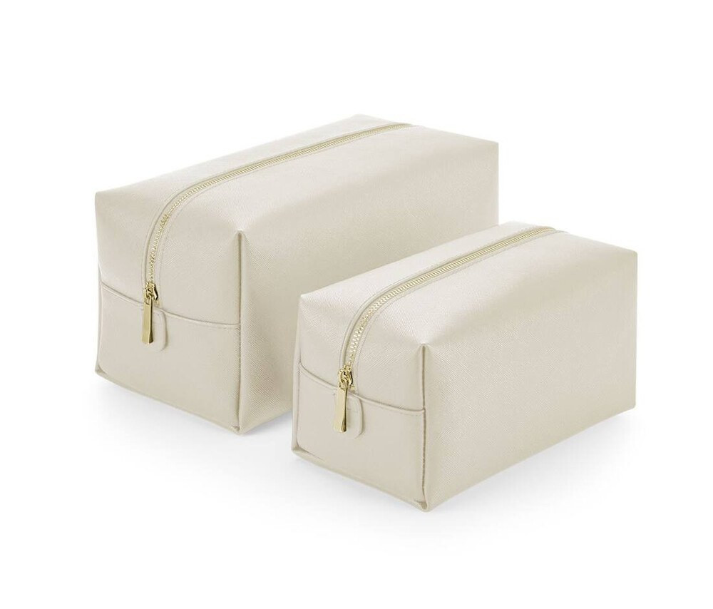 Saffiano fine grain. Multi-purpose use. Zippered main compartment. Soft-touch lining. High shine gold metal zip. TearAway label for ease of rebranding. Available in two sizes - M and L.