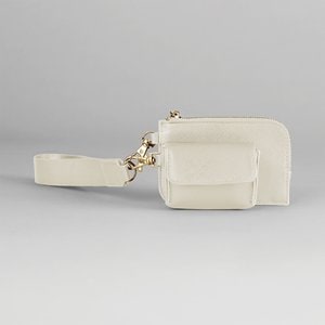 100% PU leather. AirPod case with snap fasteners. Strap handle. Zipped card case.