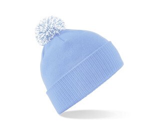 Two-tone pompom winter beanie in 100% soft acrylic provides warmth and a contemporary urban look for everyday wear or custom branding. This Beechfield BF450 features a double-layer knit construction for insulation and a flexible ribbed cuff for a secure fit. The contrasting pompom adds a modern touch to a classic silhouette. Ideal for winter events, corporate gifts, or retail startups, this beanie is specifically designed for embroidery and customization. Its one-size-fits-all elasticity ensures comfort for all users, making it a reliable choice for bulk orders or individual winter wardrobes. The dual-knit fabric offers a soft touch against the skin while maintaining durability for frequent use in cold climates.
