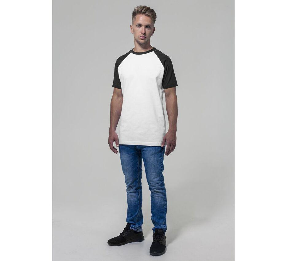Sports fans, or just those who like this style, no doubt appreciate this T-shirt Baseball Build Your Brand. It is white with collar and black sleeves.