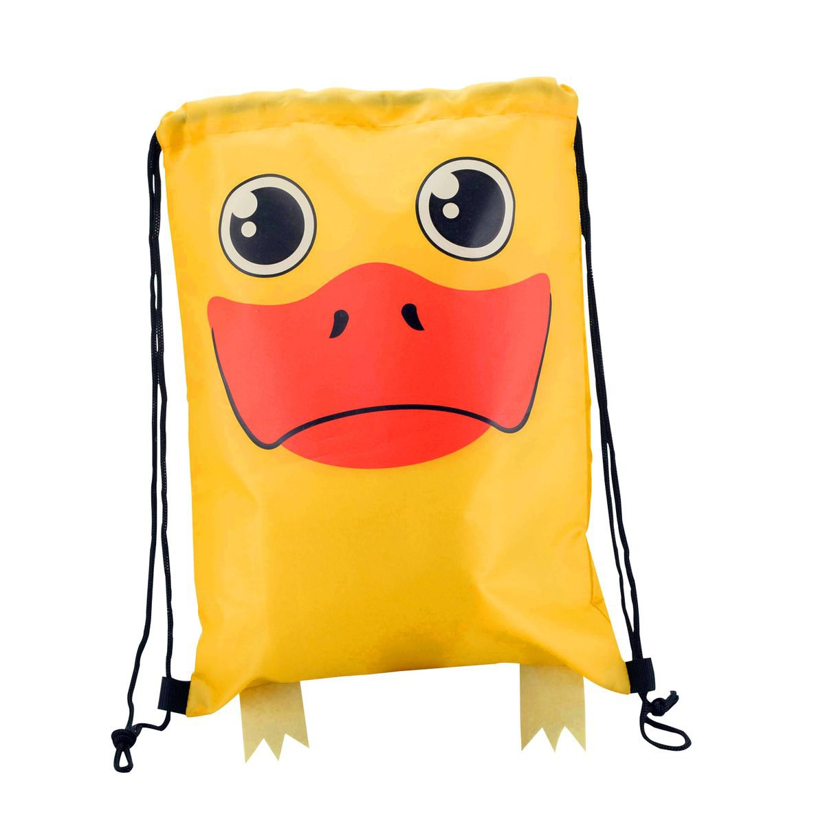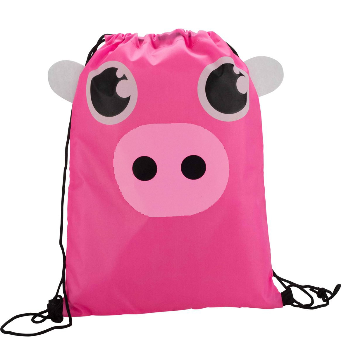 Drawstring backpack for children, in soft polyester 210T with original designs of animals. With black self closing strings and reinforced corners. Small folding size.