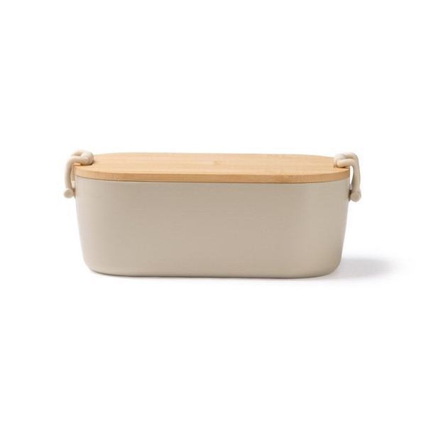 Lunch box with PP body and bamboo lid. Side safety closures. Capacity 1L.