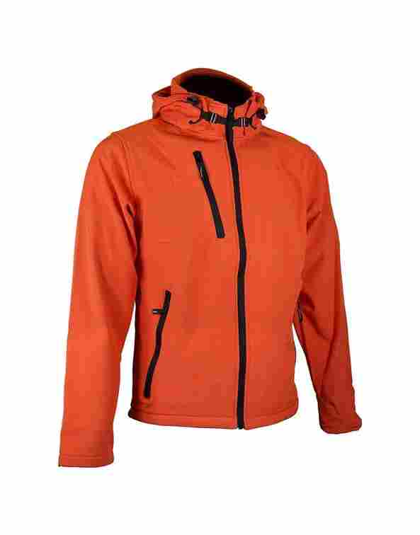 2 layers softshell jacket 94% polyester 6%elasthanne . Bonded with micro polarfleece . Removable hood.