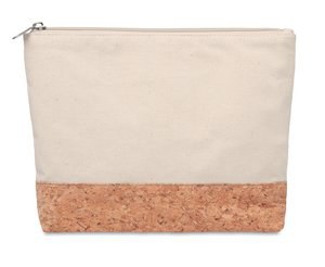 Cosmetic bag in cotton with cork detail at the bottom.