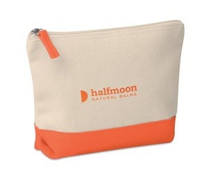Cosmetic bag in cotton with coloured bottom and matching zipper puller.