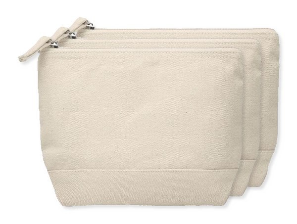 Pack of 3 GiftRetail MO9815 - Beige - KLEUREN Stylish Two-Tone Cotton Cosmetic Bag with Zipper