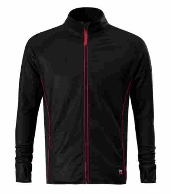 smooth stretch quick-drying fabric, straight cut with side seams, full-length reverse coil zipper with chin protection, inner neckline with a tape, raglan sleeves, cuffs with hole for thumb, zip pockets, trimmed by elastic stripe, contrast elements, hanging loop