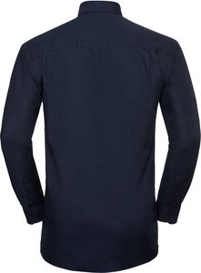 This long sleeve easy care oxford shirt offers a clean, professional look with the convenience of low-maintenance care. Made from a cotton-rich oxford blend, it features a classic button-down collar, back yoke with side pleats for added ease of movement, and a rounded hem that can be worn tucked or untucked. The left chest V-shaped pocket adds practical storage, while adjustable two-button cuffs and spare buttons help extend wear for uniforms, office teams, and everyday business use.