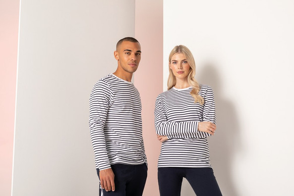 This striped T-shirt SFM204 from Skinnifit is a timeless, stylish piece of clothing with marine stripes in very fine horizontal lines.