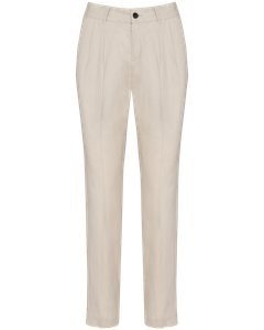 Two front pleats with a permanent leg pleat front and back.