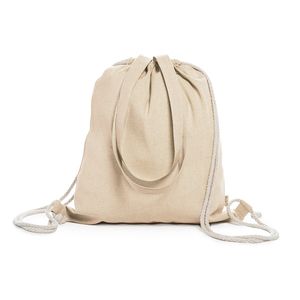 BRESCIA Drawstring bag made of 120 gsm recycled cotton in heather finish and cords in natural colour