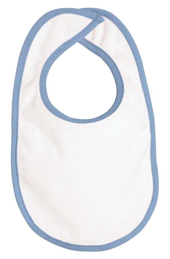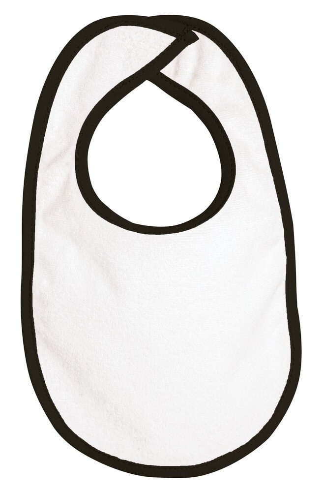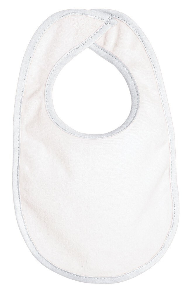 Baby Bib with Hook-and-Loop Fastening. Made with double layer fabric: a smooth poplin layer that allows for easy printing and an absorbent towelling layer that effectively retains and soaks up liquids. Hook-and-loop fastening for easy attachment at the nape of the neck. Stitched seams all around for added strength and durability. Suitable marking methods: screen printing, transfer printing, vinyl application. Ideal for a personalised gift, daily use, merchandising, souvenir, and more.