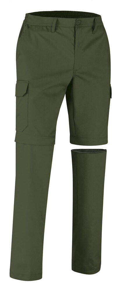 This Multi-Pocket Trekking Trousers has Detachable Legs, so you can easily convert into a Multi-Pocket Shorts in seconds.Made of durable and long-lasting cotton-polyester blend Ripstop fabric.A pair of trousers that can be easily converted into a short unzipping the legs when you need to. Button-and-zipped flap fastening, back elasticated waistband and belt loops for a better adjustment and a comfortable fit.Two slanted hip pockets, two side gusseted cargo pockets and two back pockets, all four with flap and velcro closure, for a secure and convenient storage. Suitable marking methods: screen printing, embroidery, transfer printing, vinyl application.Ideal as workwear and for outdoor and nature activities.