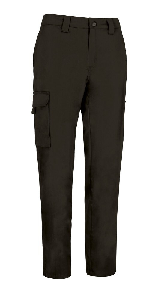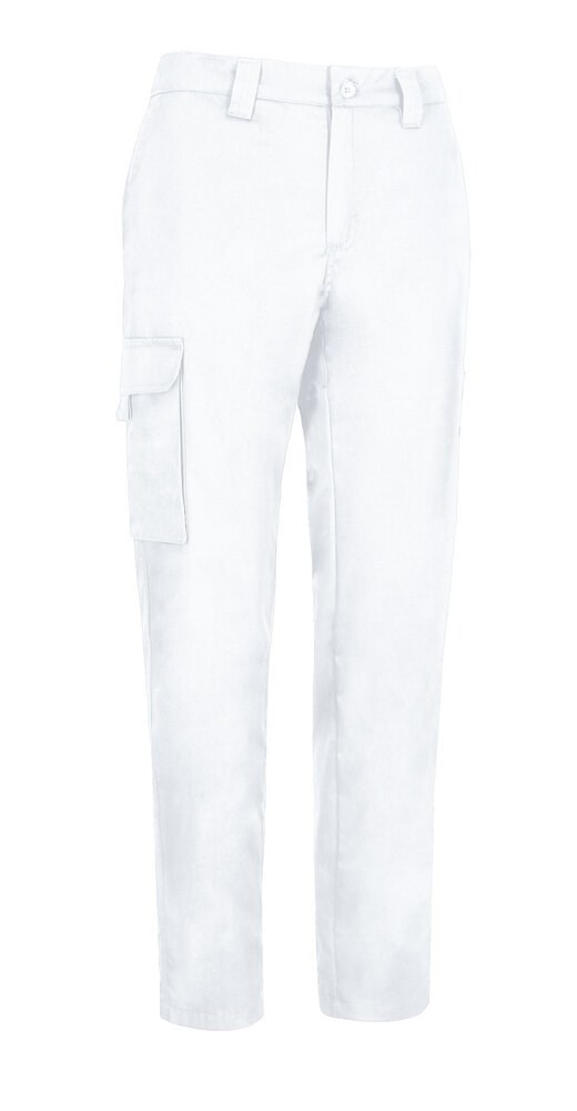 Multi-Pocket Work Trousers. Made of a sturdy cotton twill fabric blended with polyester for strength and durability.Button-and-zipped flap fastening, back elasticated waistband and belt loops for a better adjustment and a comfortable fit.Two slanted hip pockets, a right back one, a right side velcro flap cargo pocket and a puller for easy opening, a left side accessories compartment for convenient storage.Double main seams and extra high-wear reinforcements with safety bartacks, ensuring long-lasting strength and durability.Suitable marking methods: screen printing, embroidery, transfer printing, vinyl application. Ideal as workwear and uniforms.