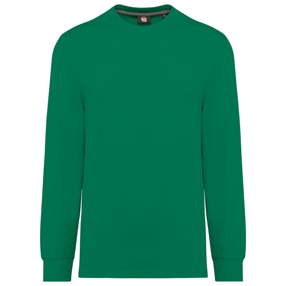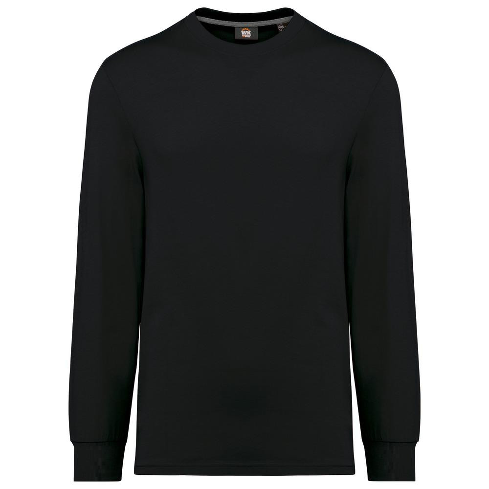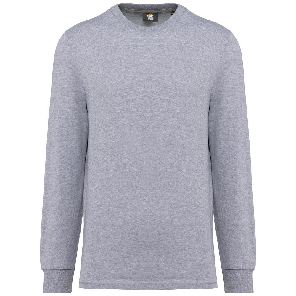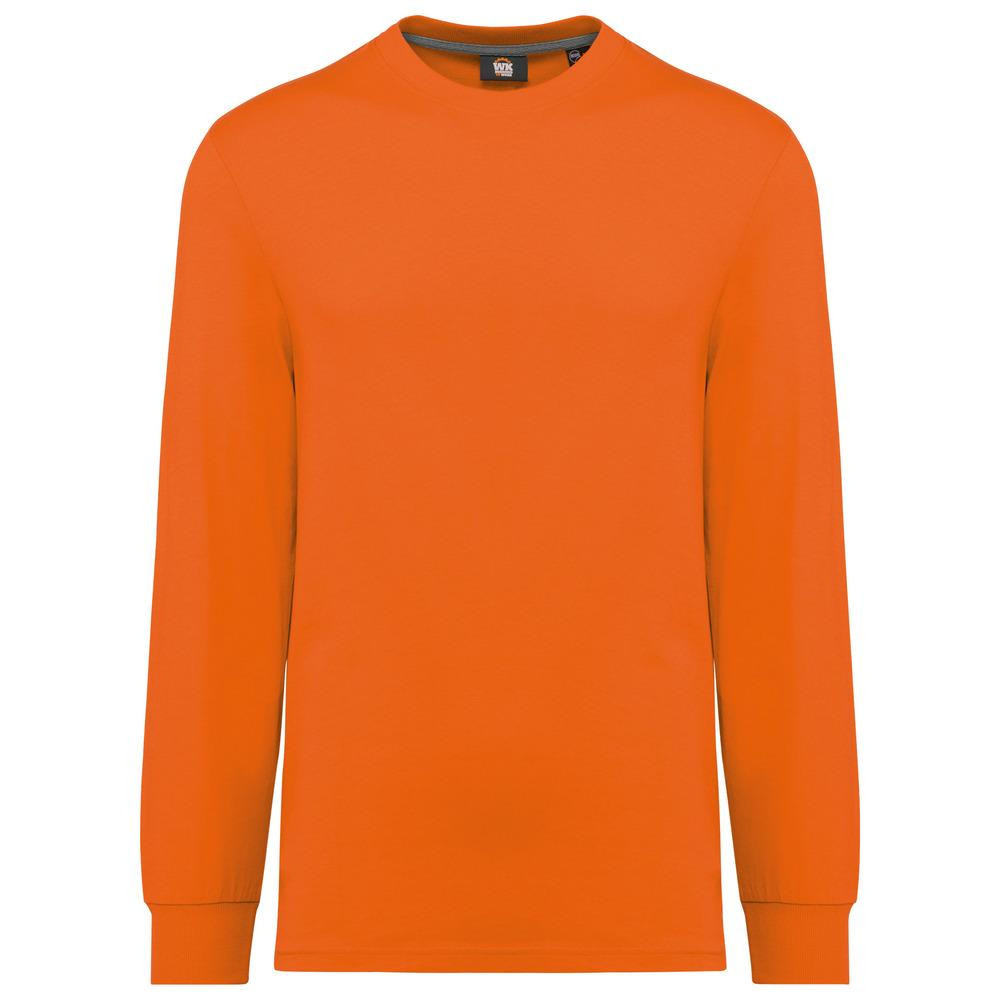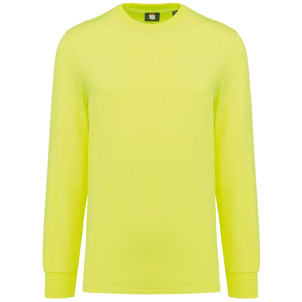 2x1 ribbed crew neckline with elastane and orange taped neck on the plain and marled colours and matching on the fluorescent colours.
