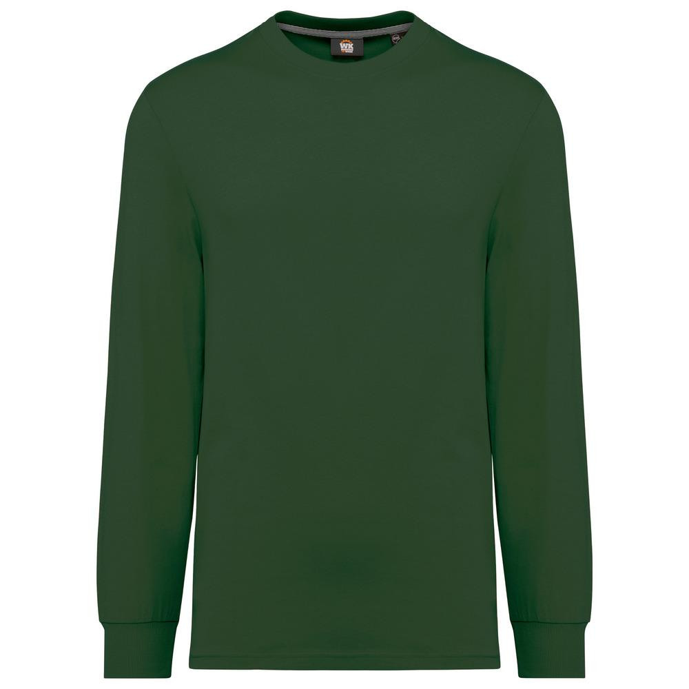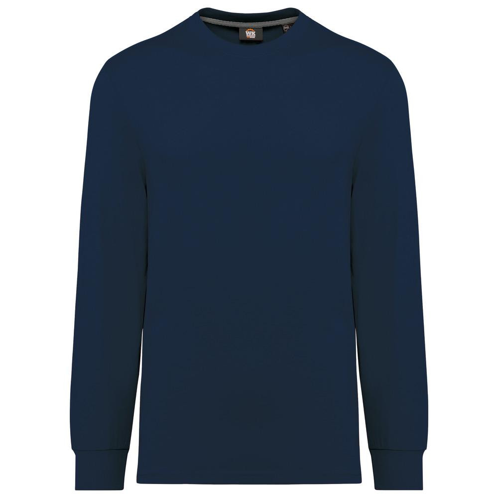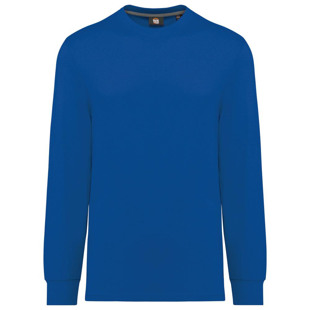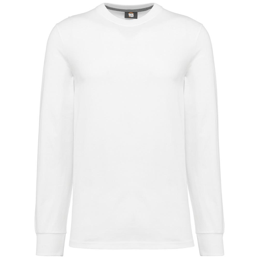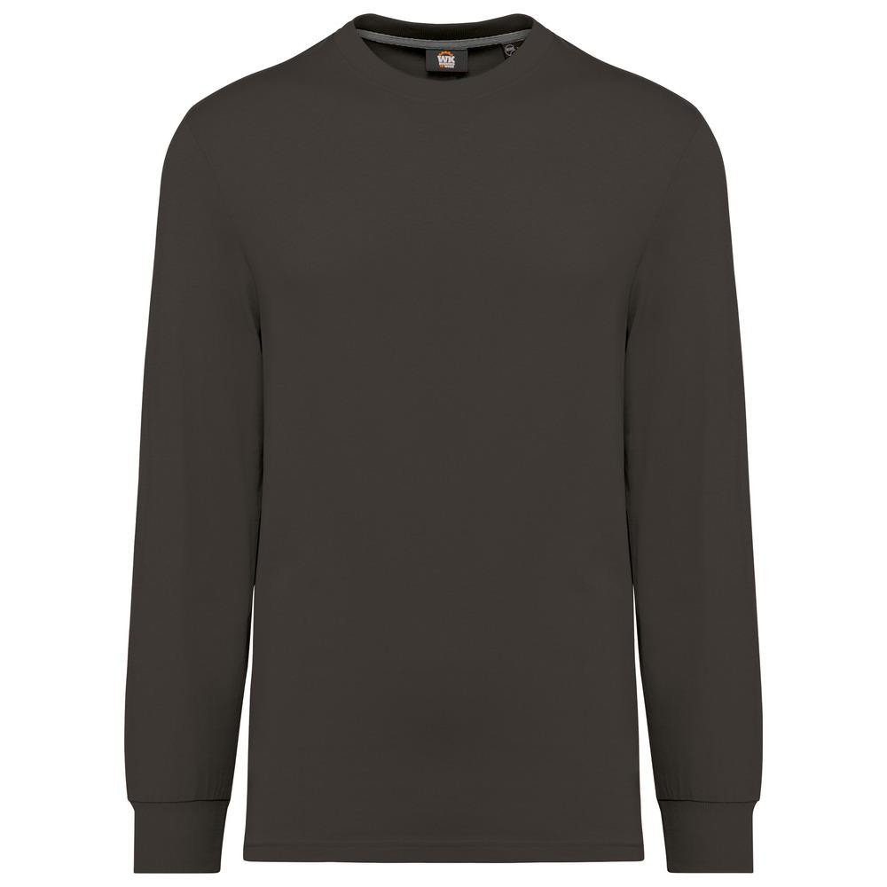 2x1 ribbed crew neckline with elastane and orange taped neck on the plain and marled colours and matching on the fluorescent colours.