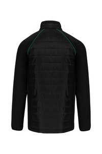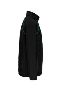 2 layers softshell, 4-way stretch fabric for greater comfort with fleece inner layer for more warmth on sleeves and shoulders to keep warm.